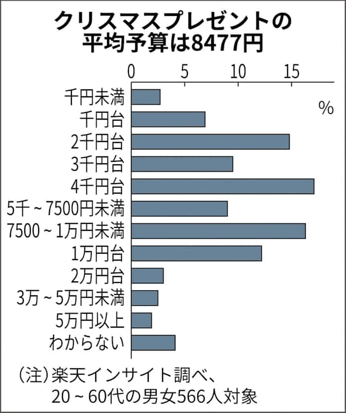 クリスマスの贈り物 平均予算8477円 民間調べ 日本経済新聞