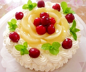 海月ちゃん のフォトギャラリー 缶詰の桃とみかんのバラ飾りケーキ