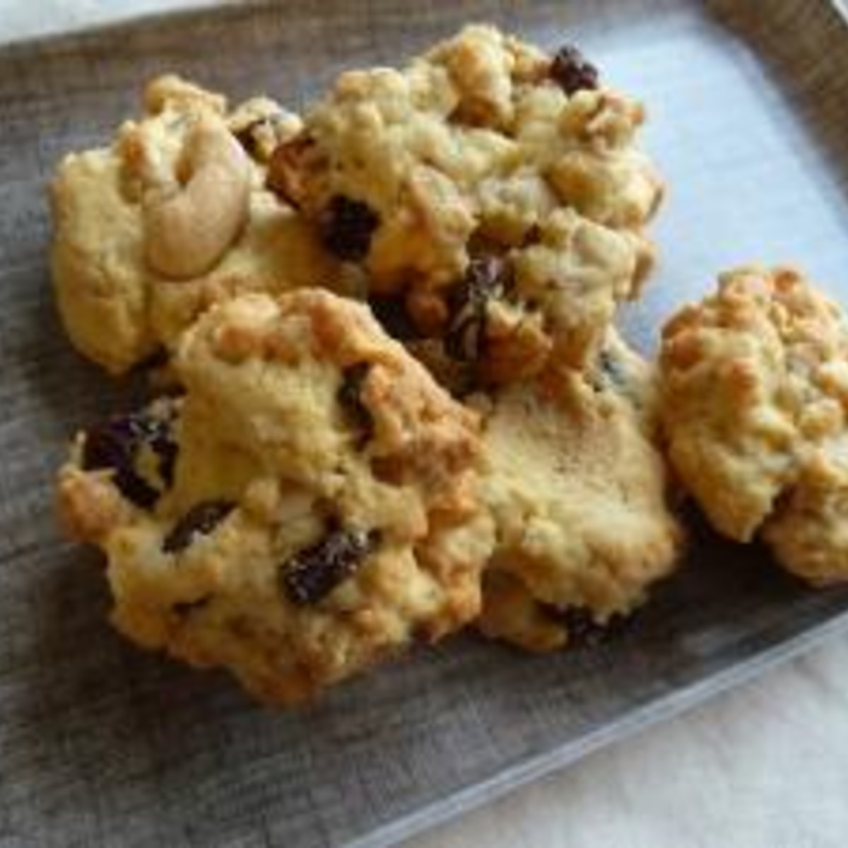 材料4つ 卵無し みかんレーズンのドロップクッキー 食べ物の
